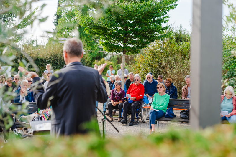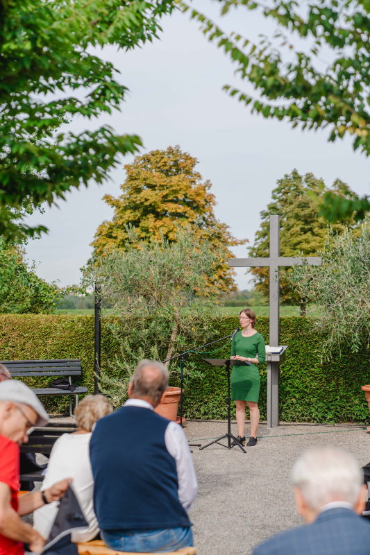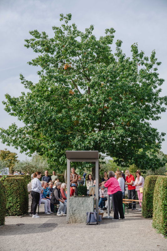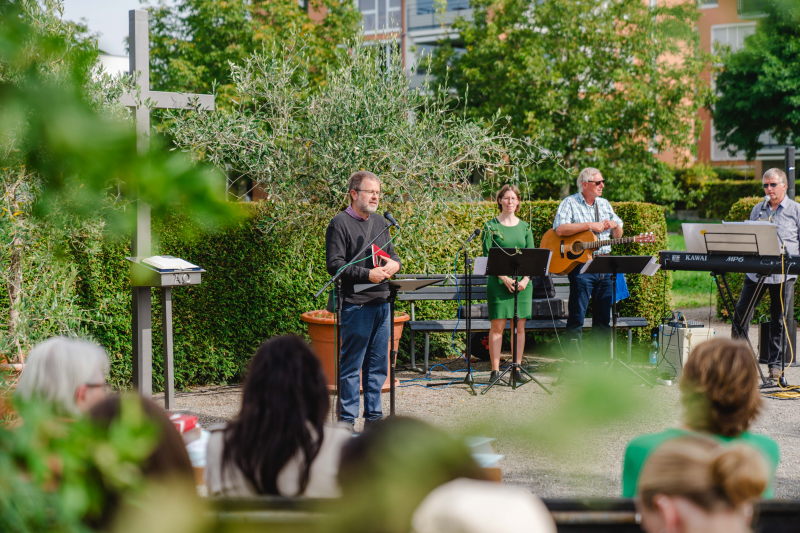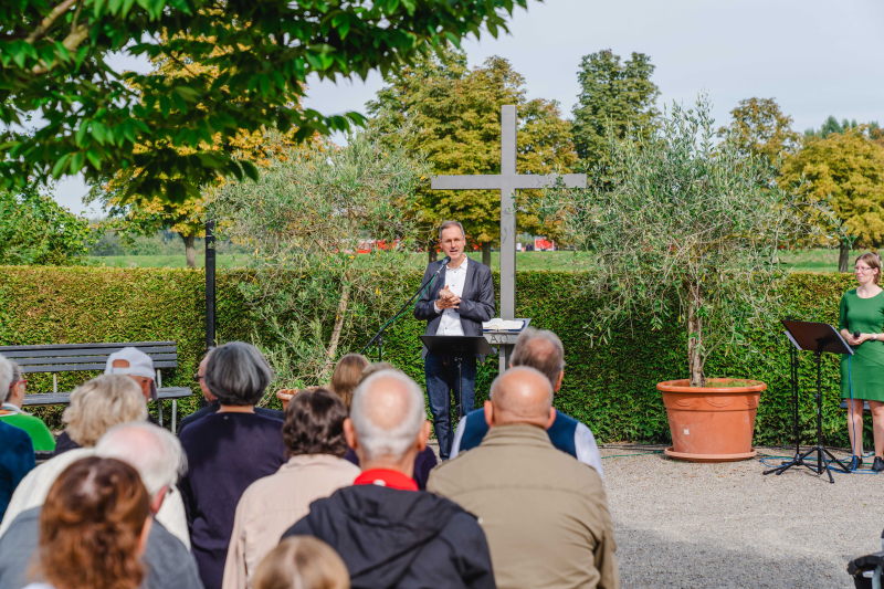 im Bibelgarten mit dem Motto – „Orientierung geben in herausfordernden Zeiten“. Für Kinder wird ein extra Programm angeboten, anschließend gibt es einen Ständerling.